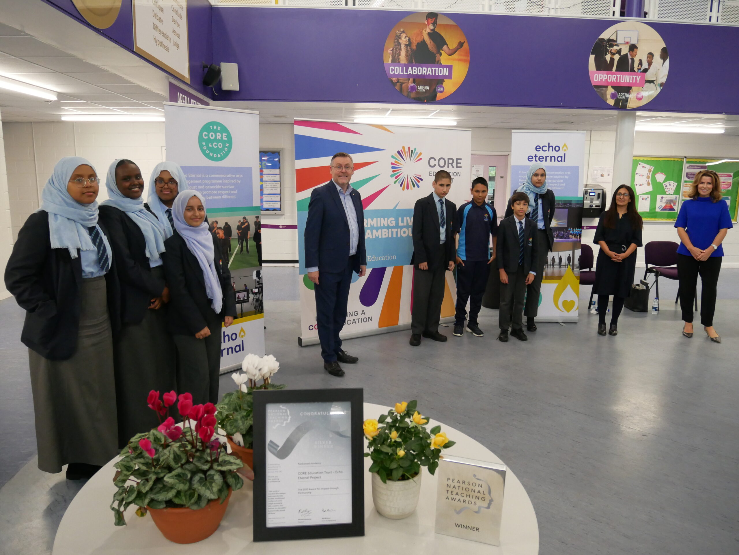 On Wednesday 16th September we were delighted to hear that CORE Education Trust’s Echo Eternal Project has been recognised in the Pearson National Teaching Awards with a Silver Award for Impact through Partnerships. Announced at our Eternal Flame Induction Ceremony, we were joined by Natasha Kaplinsky OBE, Sarah Worth Artistic Director of Highly Sprung and Vicki Gardner from Pearson to share in the celebration of our work.